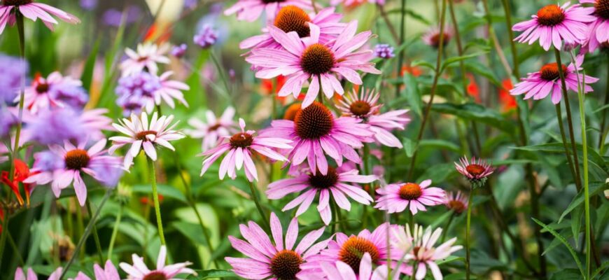 Эхинацея является одним из самых известных полевых цветов в Соединенных Штатах. Эхинацея летом и осенью дает красивые цветки разных цветов.