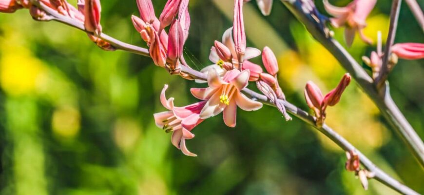 Делиться заботой! Красная Юкка (Геспералое мелкоцветковое), также известный как коралловая юкка, красноцветковая ложная юкка или юкка колибри, потому что