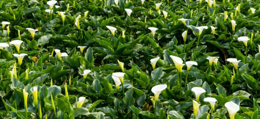 Делиться заботой! Калла лилии (Зантедескиа) являются фаворитами в декоративных садах и часто используются в цветочных композициях или свадебных букетах.