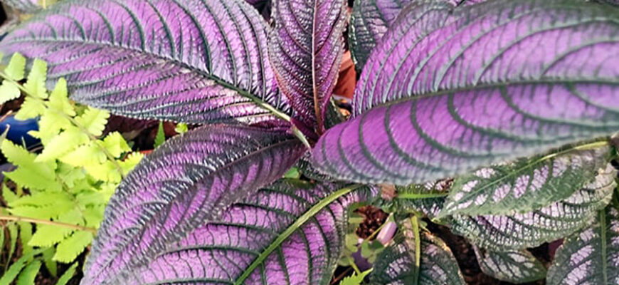 Персидское щитовое растение (Strobilanthes dyerianus) Это растение произрастает в Мьянме и является членом семейства Acanthaceae. Его обычное название —