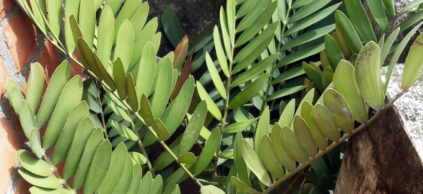 Картонный пальмовый завод (замиокулькас) Это растение не пальма, но похоже, что у него схожие привычки роста, поэтому его обычно называют картонной пальмой
